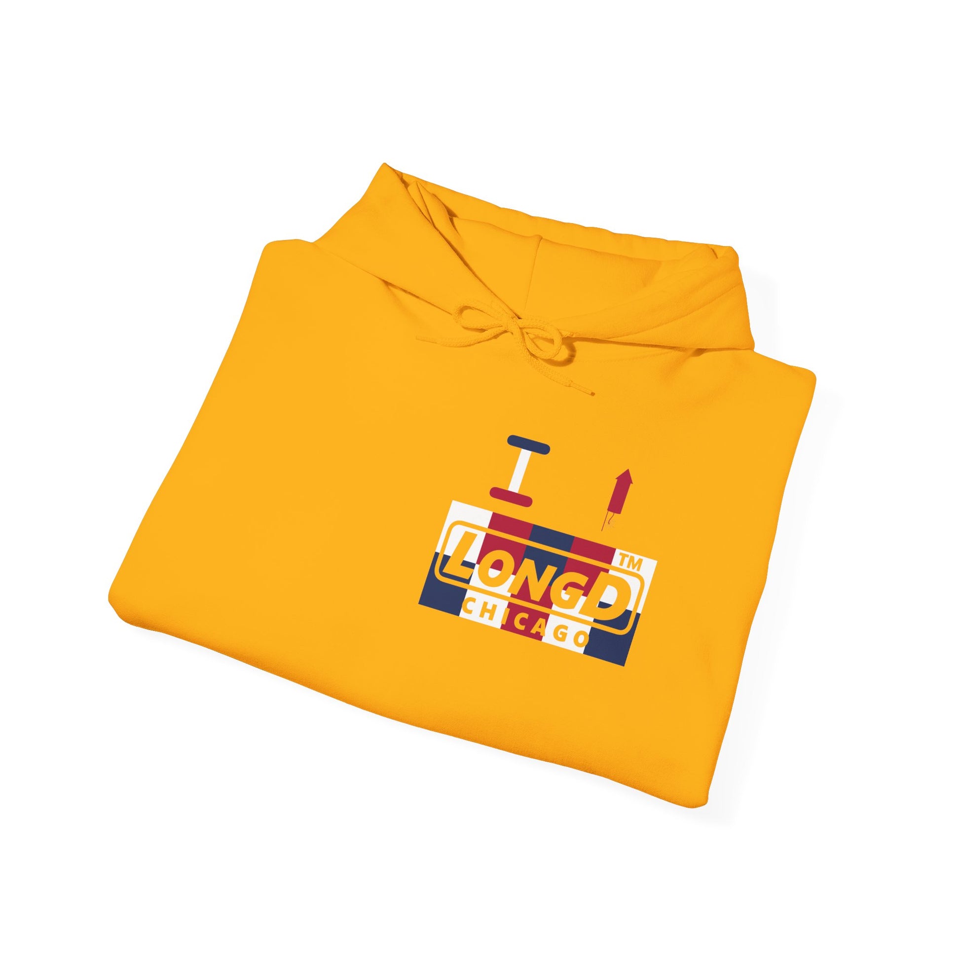 I firecracker LongD® negative 2x5 4-print single breasted Chicago logo hoodie
